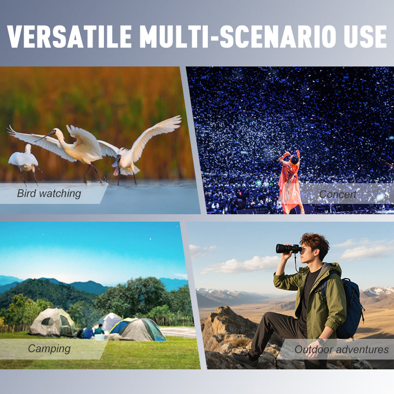 VERSATILE MULTI-SCENARIO USE – Suitable for birdwatching, concerts, sports, and outdoor adventures. The 5-meter close focus captures fine details, making it ideal for camping, wildlife observation, and various distance viewing situations.