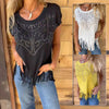 FLATTERING SILHUETTE: The women's solid colour short sleeve T-shirt is designed to fit all body types, with the tassel hemline providing a dynamic element that can draw attention away from the waist and create a visually appealing silhouette.