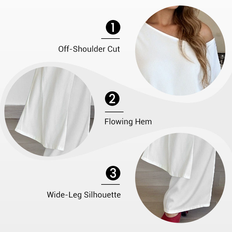 🌷Solid Color Off-Shoulder Top & Pants Set👗